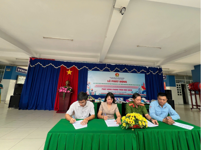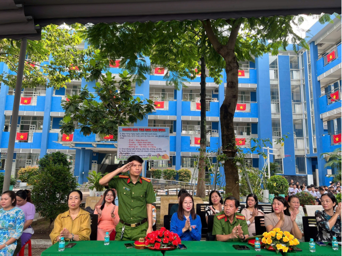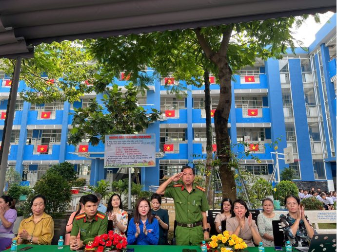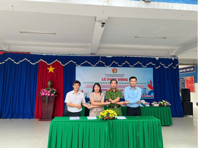 🌟Cũng trong buổi lễ cô Nguyễn Thị Hoà Thuận - Hiệu trưởng nhà trường; thầy Nguyễn Mạnh Tín-Tổng phụ trách Đội; Thầy Phạm Văn Kỷ - Bí thư chi Đoàn cùng chú Huỳnh Nhật Tân- Phó Trưởng công an phường đã kí cam kết phối hợp về đảm bảo An toàn giao thông, Trật tự đô thị, phòng chống ma túy và thuốc lá điện tử.