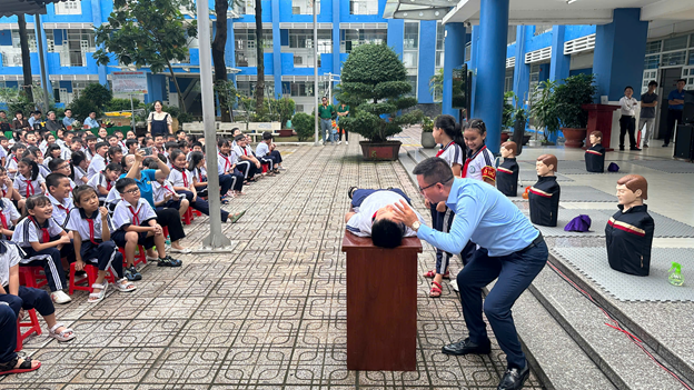⛵️⛵️Dưới sự hướng dẫn chuyên nghiệp của các chuyên gia đến từ Viện An toàn Khoa học Việt Nam, các em học sinh đã được tham gia một tiết học đặc biệt, kết hợp nhuần nhuyễn giữa lý thuyết và thực hành. Các em vừa được lắng nghe kiến thức về các tình huống an toàn, vừa được trực tiếp tham gia xử lý các tình huống giả định một cách sinh động và dễ hiểu.
