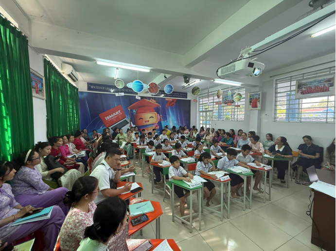 🌟🌟Dưới sự dẫn dắt của cô giáo Phạm Thuỳ Hải Vân, các thầy cô giáo tham dự đã được trải nghiệm một tiết học Toán vô cùng sinh động và hấp dẫn. Bằng phương pháp giảng dạy trực quan, kết hợp trò chơi tương tác, cô Vân đã khéo léo lồng ghép tiếng Anh vào bài học, giúp các em học sinh lớp 3 tiếp thu kiến thức một cách tự nhiên và đầy hứng khởi.