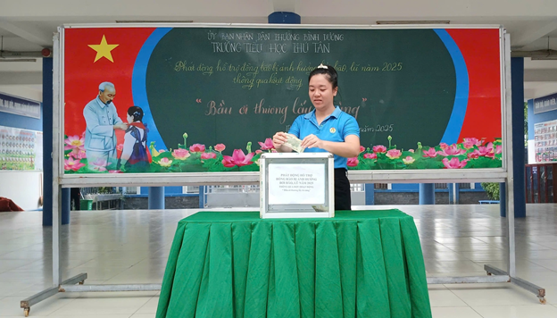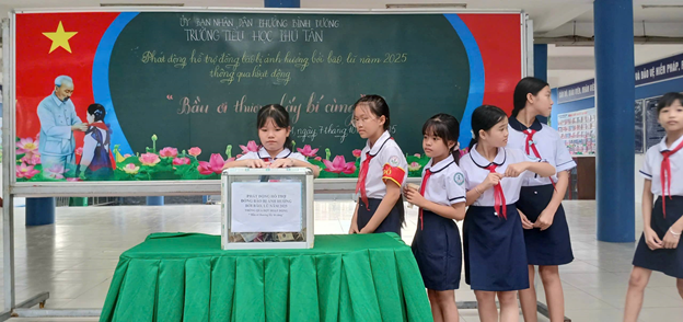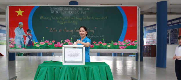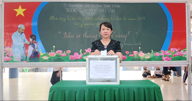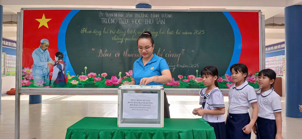 TRƯỜNG TIỂU HỌC PHÚ TÂN TỔ CHỨC QUYÊN GÓP ỦNG HỘ ĐỒNG BÀO BỊ ẢNH HƯỞNG BÃO SỐ 10.
