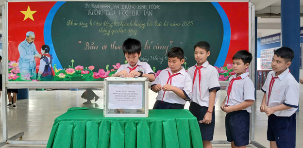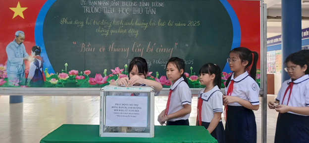 Hưởng ứng lời kêu gọi của Ủy ban Mặt trận Tổ quốc phường Bình Dương và thực hiện theo tinh thần Công văn 173 của Hội đồng đội Thành phố Hồ Chí Minh, với tinh thần "tương thân tương ái", "lá lành đùm lá rách", Trường Tiểu học Phú Tân đã phát động chương trình quyên góp ủng hộ đồng bào miền Trung bị ảnh hưởng bởi cơn bão số 10.