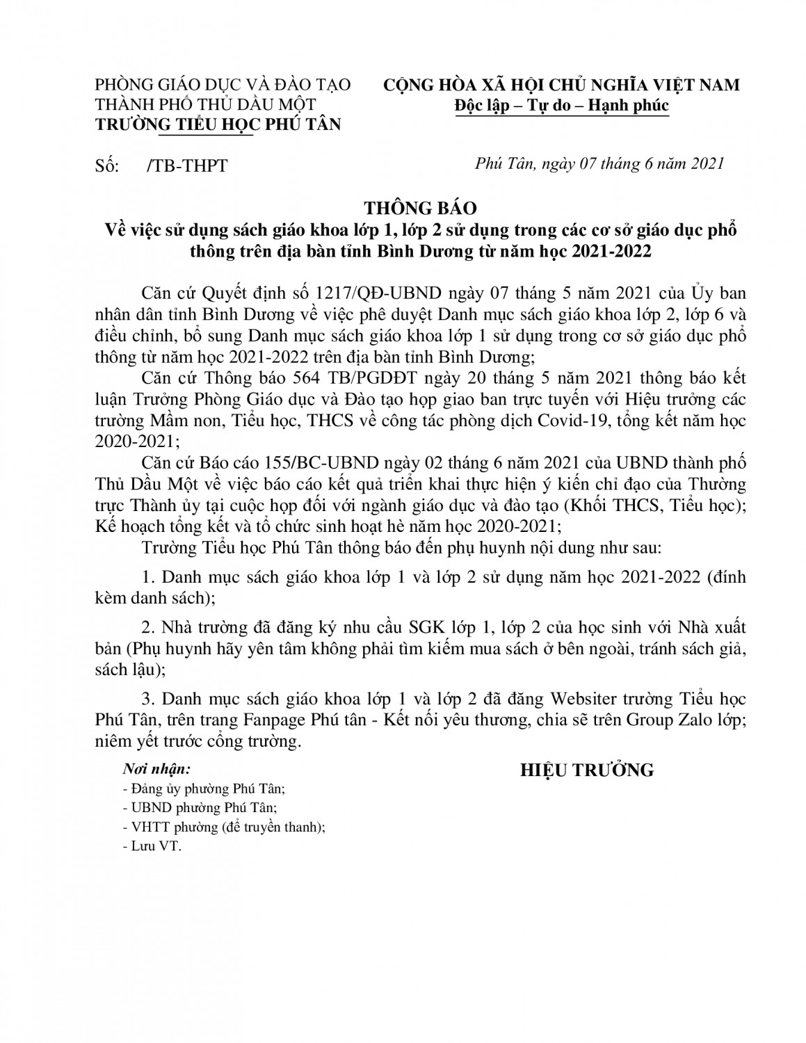 THÔNG BÁO ĐIỀU CHỈNH ĐỊA ĐIỂM TUYỂN SINH LỚP 1 NĂM HỌC 2021-2022