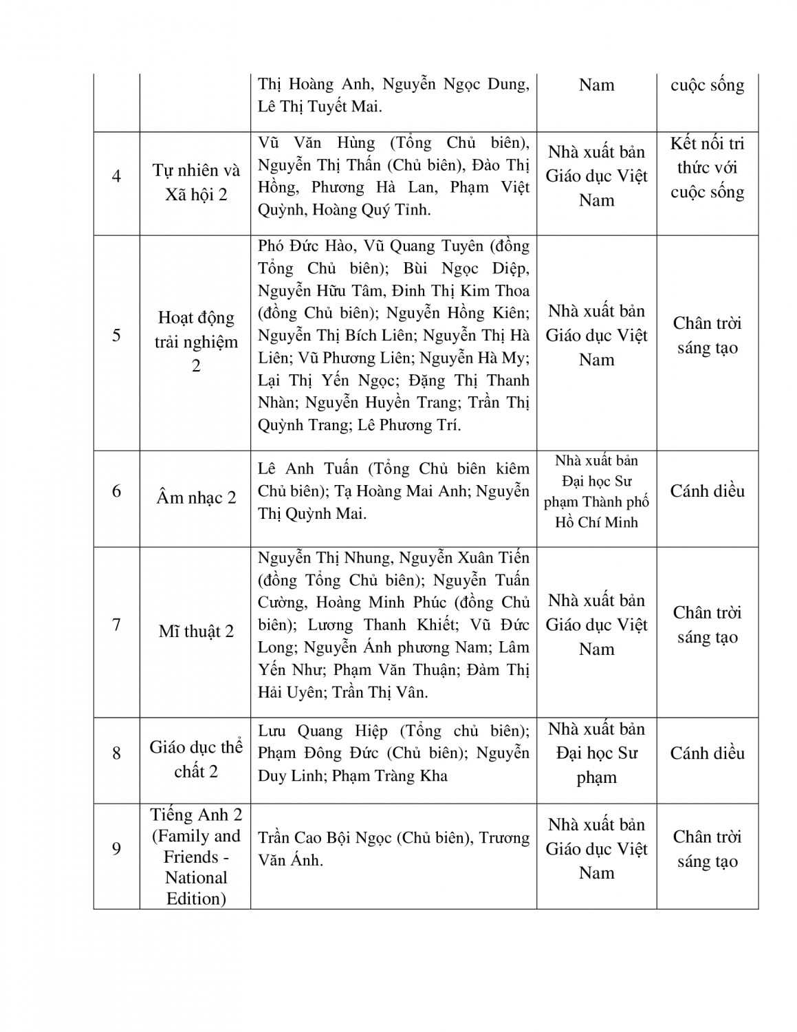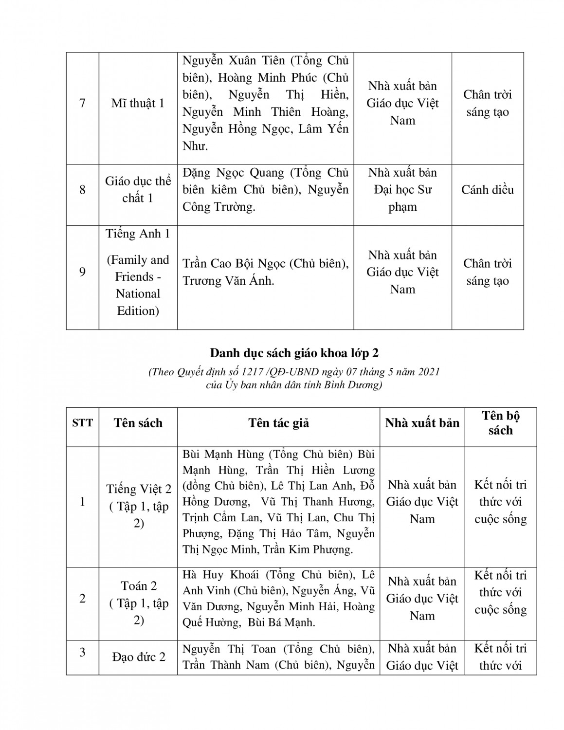 TIẾP TỤC THÔNG BÁO VỀ DANH MỤC SGK LỚP 1 VÀ LỚP 2