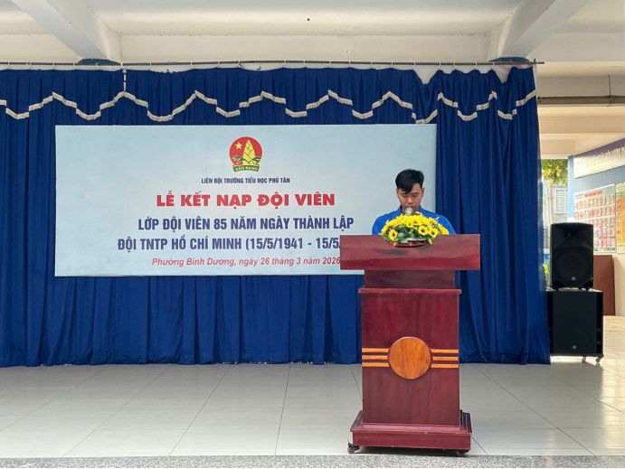 📅Sáng ngày 26/03/2026, trong không khí trang nghiêm và đầy tự hào, Liên đội Trường Tiểu học Phú Tân đã long trọng tổ chức Lễ Kết nạp Đội viên mới cho các em nhi đồng ưu tú khối 3. Đây là một sự kiện đặc biệt quan trọng, chính thức công nhận "Lớp Đội viên 85 năm" nhân kỷ niệm 85 năm ngày thành lập Đội TNTP Hồ Chí Minh.